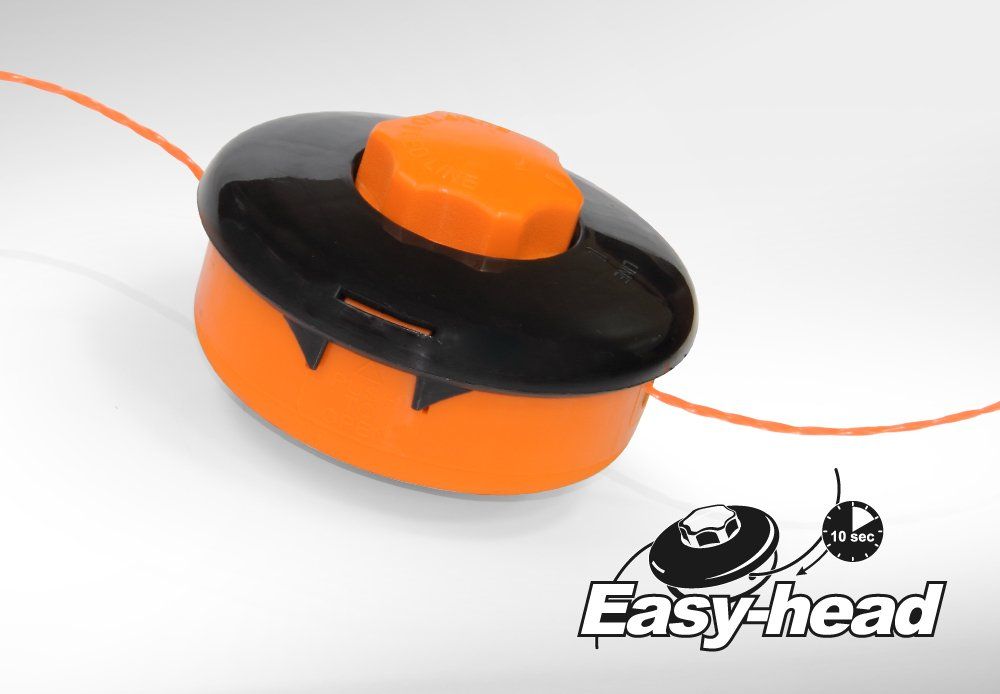 Конструкция картриджа для лески с системой EASY-HEAD обеспечивает быструю и простую замену лески в три этапа: 1. Совместить метки на картридже 2. Продернуть леску сквозь картридж 3. Закрутить барабан картриджа