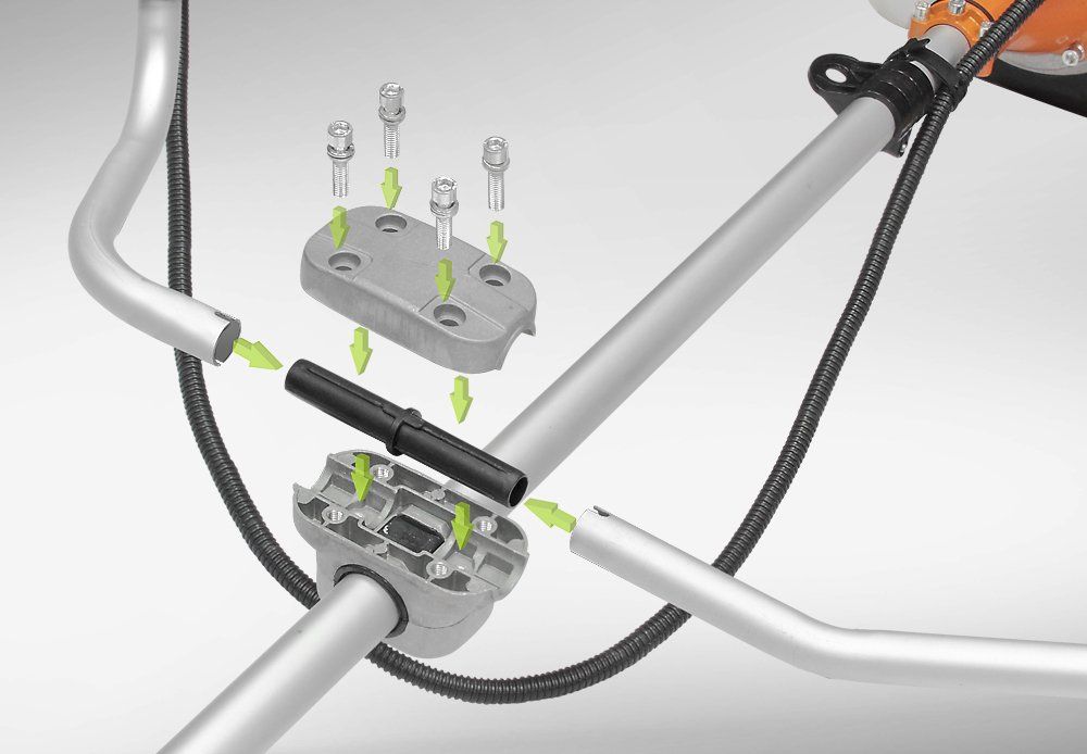 Увеличенная жесткость крепления рукояток, благодаря мощному кронштейну и дополнительной осевой вставке. Осевая вставка улучшает плотность зажима и исключает смещение рукояток относительно друг друга.