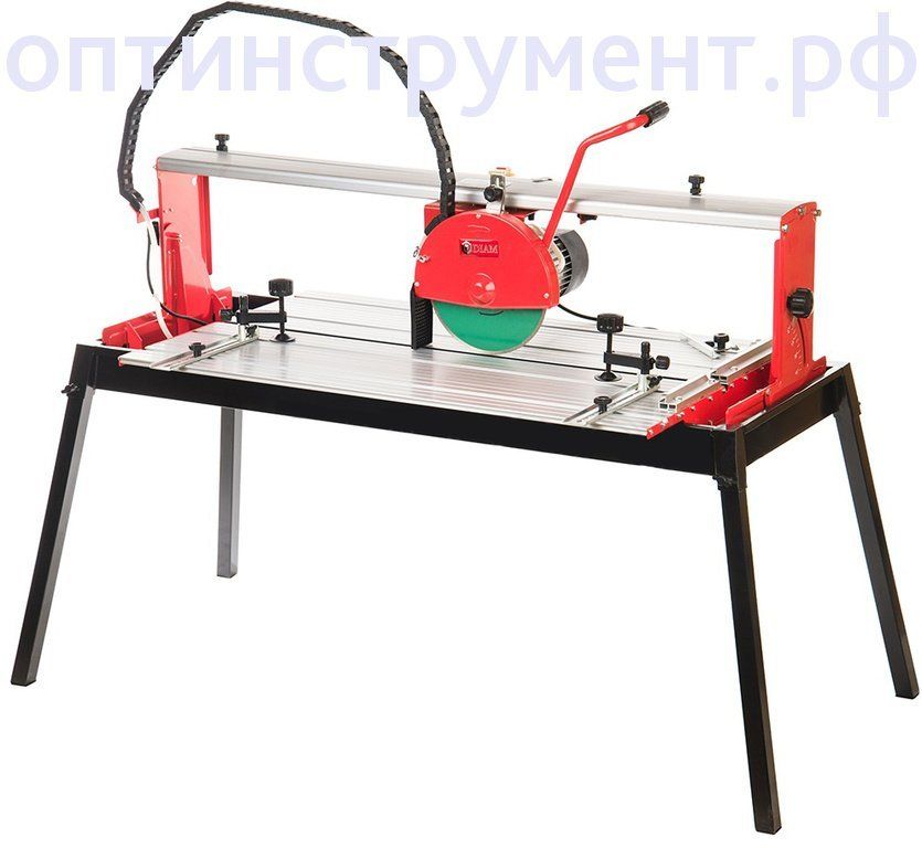 Отрезной станок DIAM SРmax-250/1.5 600048 может резать керамогранит и твердую керамику. Станок может производить рез плитки на длину до 900 мм, что позволяет разрезать материал размером 600х600 мм по диагонали, и глубину 30 мм. Большой рабочий стол позволяет удобно разместить плитку, что положительно влияет на качество реза. Данная модель имеет высокую производительность, так как оснащена электродвигателем с мощностью 1500 Вт и скоростью вращения 3000 об/мин.