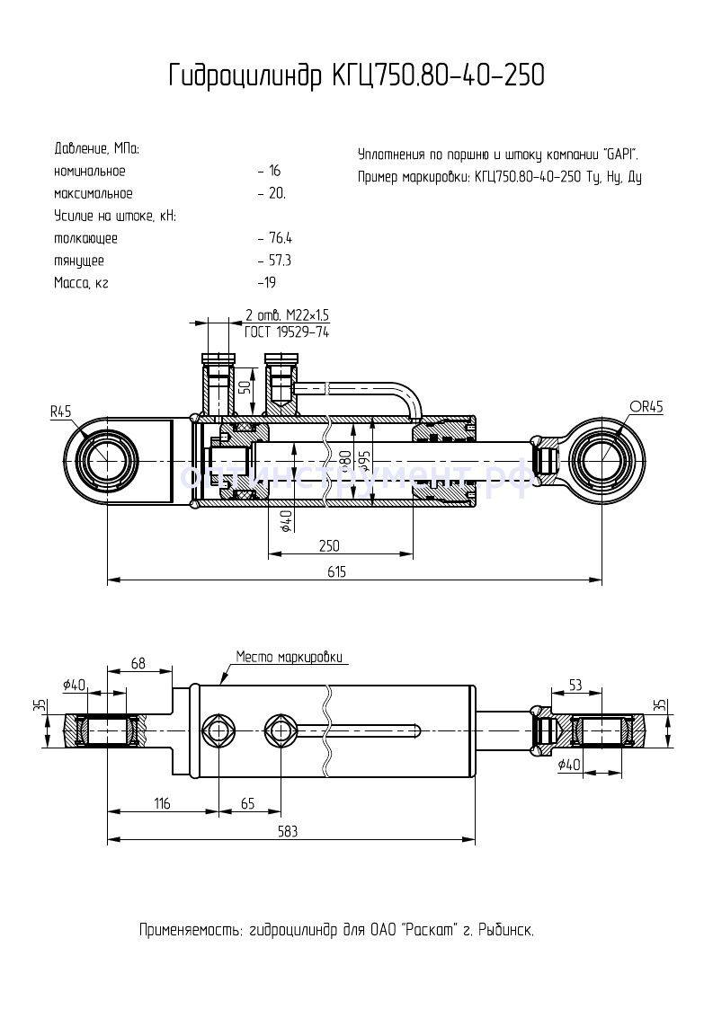Гидроцилиндр КГЦ 750.80-40-250 в продаже по цене 11 655 руб. в Интернет-магазине Проф-инструмент с доставкой в Нижнем Новгороде и Нижегородской области. Звоните по телефону +8 (800) 302-10-51.