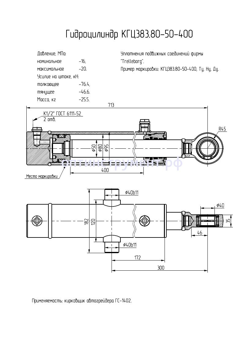 Гидроцилиндр кирковщика автогрейдера "ГС-1402" КГЦ 383.80-50-400 в продаже по цене 14 400 руб. в Интернет-магазине Проф-инструмент с доставкой в Нижнем Новгороде и Нижегородской области. Звоните по телефону +8 (800) 302-10-51.