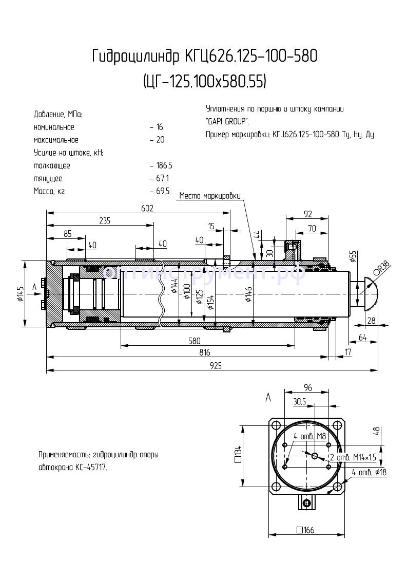Гидроцилиндр опоры автокрана "КС-45717" КГЦ 626.125-100-580 в продаже по цене 32 880 руб. в Интернет-магазине Проф-инструмент с доставкой в Нижнем Новгороде и Нижегородской области. Звоните по телефону +8 (800) 302-10-51.