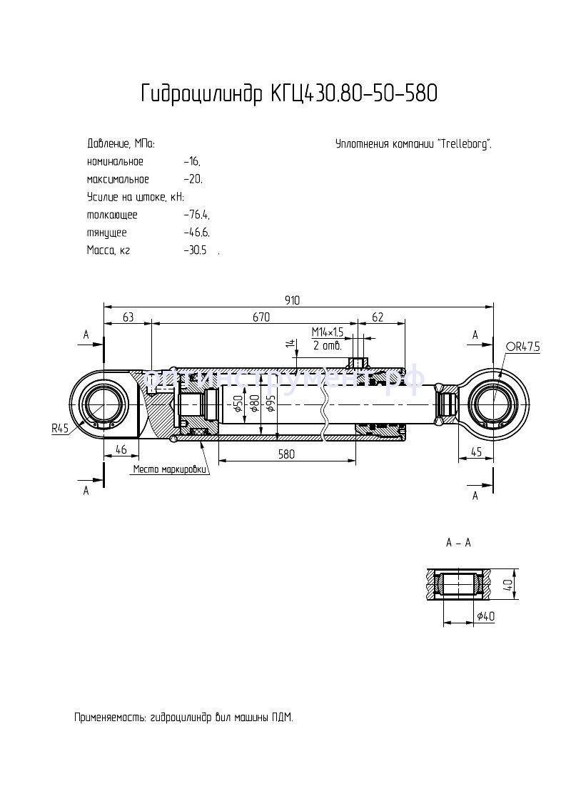 Гидроцилиндр вил машины "ПДМ" КГЦ 430.80-50-580 в продаже по цене 15 540 руб. в Интернет-магазине Проф-инструмент с доставкой в Нижнем Новгороде и Нижегородской области. Звоните по телефону +8 (800) 302-10-51.