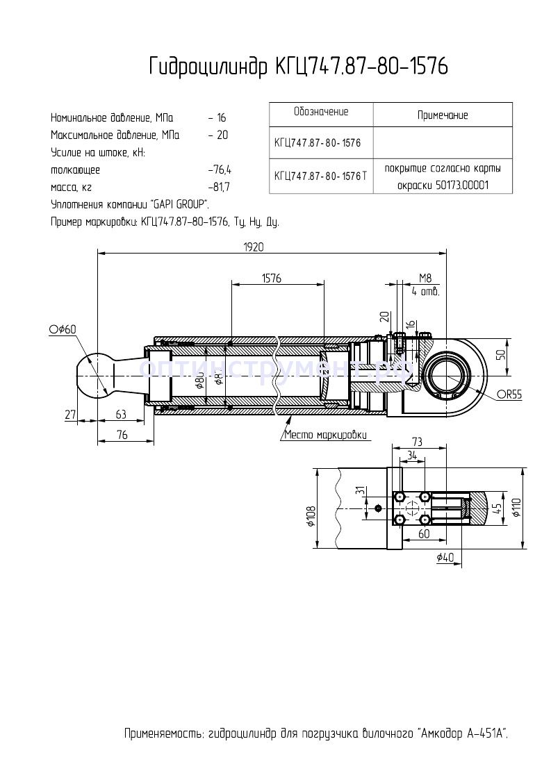 Гидроцилиндр для погрузчика вилочного "Амкодор А-451А" КГЦ 747.87-80-1576 в продаже по цене 35 160 руб. в Интернет-магазине Проф-инструмент с доставкой в Нижнем Новгороде и Нижегородской области. Звоните по телефону +8 (800) 302-10-51.