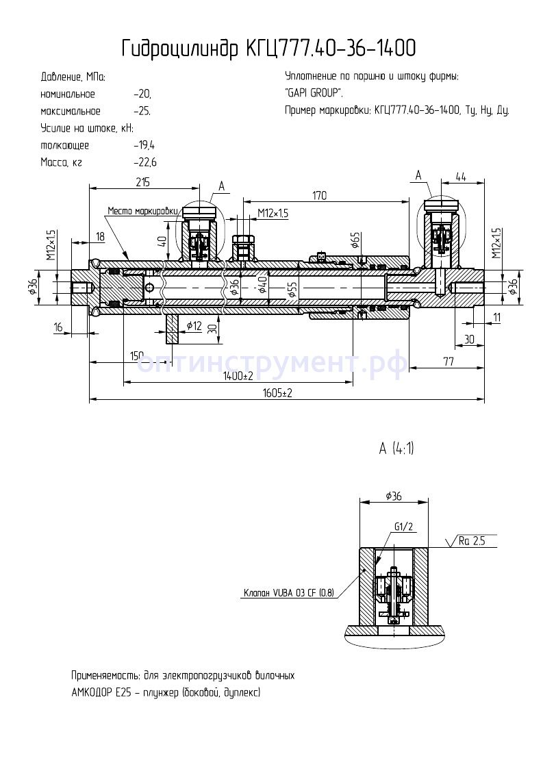 Гидроцилиндр для электропогрузчиков вилочных АМКОДОР Е25, КГЦ 777.40-36-1400 в продаже по цене 0 руб. в Интернет-магазине Проф-инструмент с доставкой в Нижнем Новгороде и Нижегородской области. Звоните по телефону +8 (800) 302-10-51.