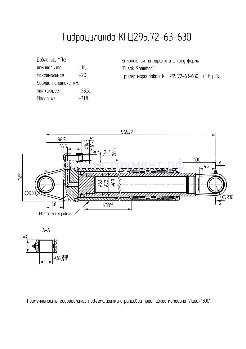 Гидроцилиндр подъёма жатки сеялки "Лидагропроммаш " КГЦ 295.72-63-630 в продаже по цене 16 620 руб. в Интернет-магазине Проф-инструмент с доставкой в Нижнем Новгороде и Нижегородской области. Звоните по телефону +8 (800) 302-10-51.