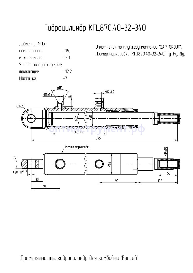 Гидроцилиндр комбайна "Енисей" КГЦ 870.40-32-340 в продаже по цене 0 руб. в Интернет-магазине Проф-инструмент с доставкой в Нижнем Новгороде и Нижегородской области. Звоните по телефону +8 (800) 302-10-51.