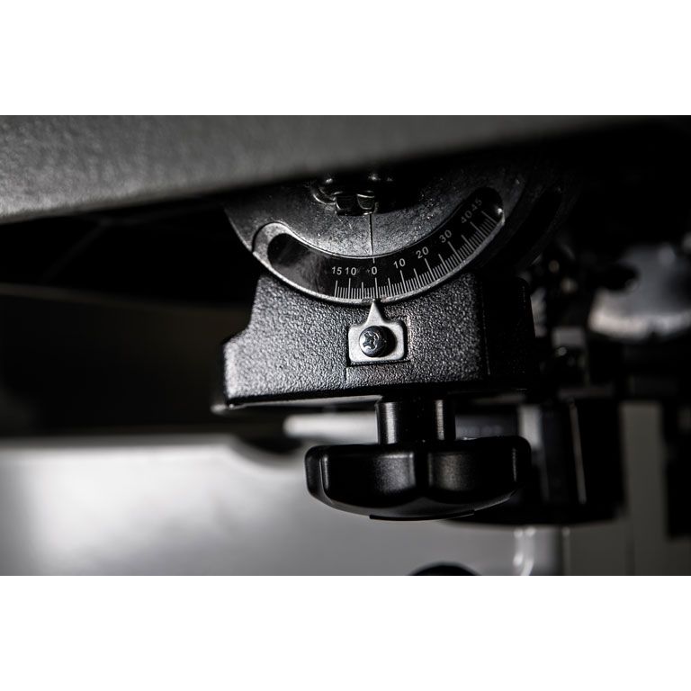 Рабочий стол чугунный, его наклон возможен в две стороны. Из этого же материала изготовлены рама и другие ответственные элементы конструкции, что обеспечивает высокую жесткость и отсутствие вибраций.