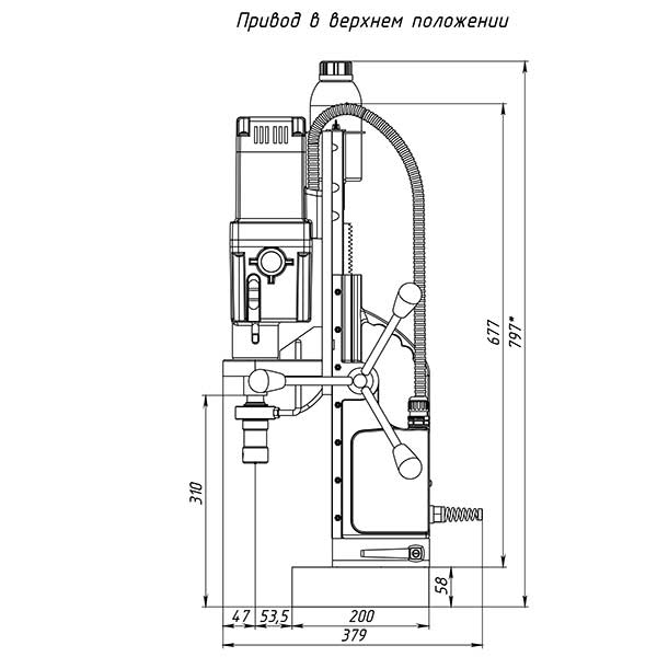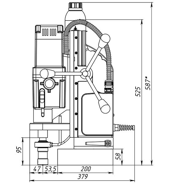 Этот переносной сверлильный станок на магнитном основании предназначен для промышленного использования, сверления большого количества отверстий диаметром до 100 мм, и, также будет надежен при использовании спиральных сверл диаметром до 32 мм. Это станок с подвижным магнитным основанием, то есть при активированном электромагните возможно разъединить жесткую связь станины с магнитом и отрегулировать положение центра сверла, потом снова жестко закрепить станок поворотом рукоятки. Эта функция весьма полезна при сверлении вертикальных поверхностей, потому что трудно с первой попытки попасть довольно тяжелым магнитым станком в центр будущего отверстия. На магнитных станках зарубежных производителей такая функция называется "магнитное основание с юстировкой". В 2014 году наши инженеры усовершенствовали систему подвижного магнитного основания, создав конструкцию, не имеющую аналогов по надежности, износостойкости и удобству. В отличие от иностранных станков, имеющих подобный механизм, наш невозможно "провернуть", а для разобщения магнита и корпуса станка не требуется ключ.