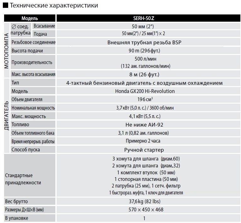 Самая высоконапорная, пожарная бензиновая мотопомпа. Тушение пожаров, перекачка воды на дальние растояние, полив. Мощность 5,0 лс, Производительность 30,0 куб м/час, напор 90 м, двигатель Honda GX200 Hi Revolution с датчиком масла в картере , D вх/вых 50/50-25-25 мм, размер частиц 6 мм, бак 3.1 л.