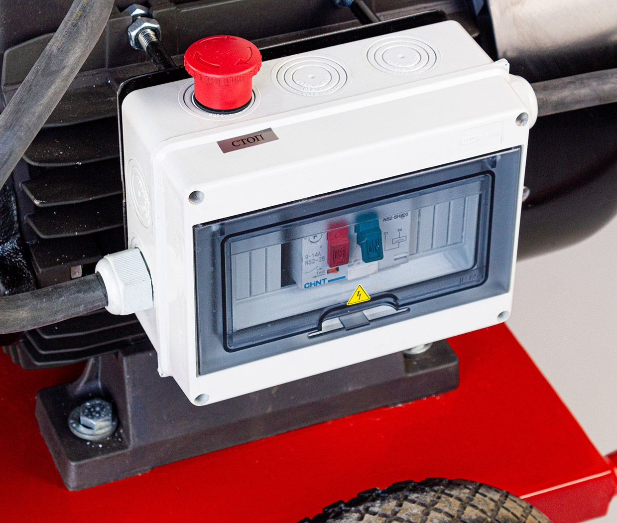 - Электрический двигатель мощностью 15 кВт, напряжение 380 В. Имеет встроенную защиту от перегрузок по току и коротких замыканий;