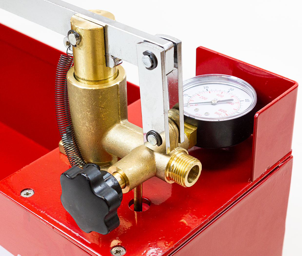 Его конструкция обеспечивает надежную работу в течение продолжительного времени, т.к. все детали его гидравлической системы изготовлены из нержавеющих материалов, а клапаны всасывания и нагнетания защищены от попадания грязи при всасывании и сливе рабочей жидкости. Постоянство давления в испытываемой системе обеспечивается двумя клапанами и вентилем с шаровыми запорами.