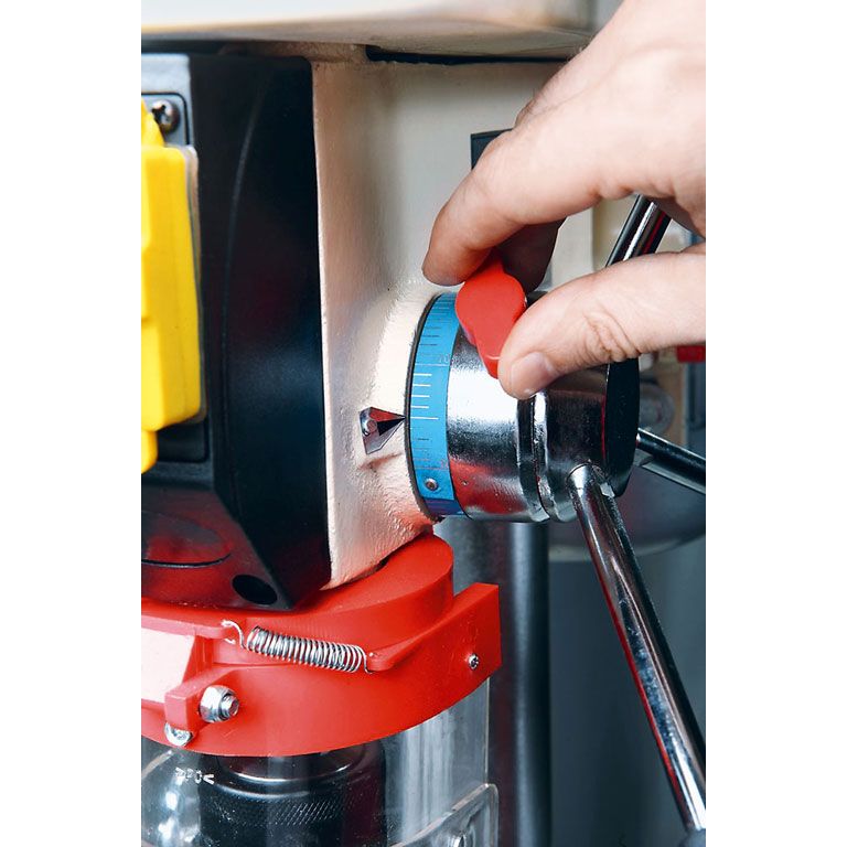 Jet JDP-10L - сверлильный станок, предназначенный для любительской работы с деревом и другими материалами. Несмотря на ограничения по интенсивности эксплуатации, он имеют все функции и системы, присущие профессиональным аналогам. Для контроля перемещения пиноли шпинделя предусмотрен лимб (круговая шкала), есть регулировка рабочего стола по наклону и высоте (для перемещения вращают рукоятку). Стол выполнен из чугунного литья и снимается, что позволяет работать с крупногабаритными заготовками. Роль опоры при этом исполняет основание станка, поверхность которого так же хорошо обработана и имеет пазы для крепления тисков (входят в комплект поставки).