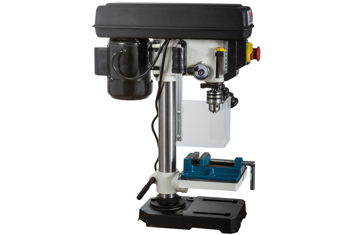 JDP-8BM - настольный сверлильный станок компактного класса. Подойдет на роль универсального в случае бытового использования или для сверления небольших диаметров при профессиональной эксплуатации. Конструкция относительно проста, но выполнена добротно и содержит все необходимое для точной и уверенной работы. Двигатель рассчитан на режим S1, что означает отсутствие существенного нагрева при номинальной мощности даже в течение длительных нагрузочных циклов. Редуктор имеет два ступенчатых пятиручейковых шкива для переустановки ремня, что позволяет выбрать оптимальную скорость и обеспечить необходимый вращающий момент.