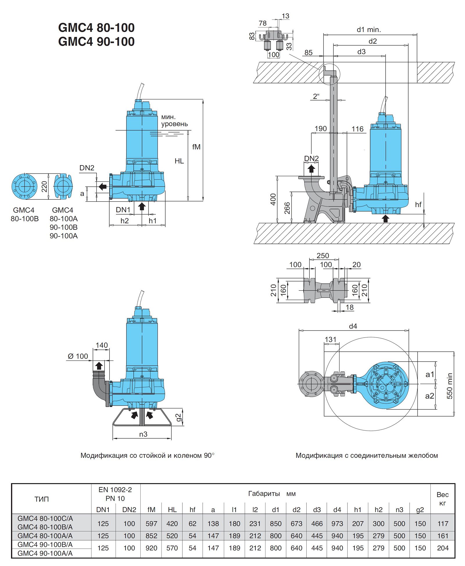Насосы данной серии применяются для перекачивания сточных вод с температурой до 40С и частицами диаметром от 65 до 100мм