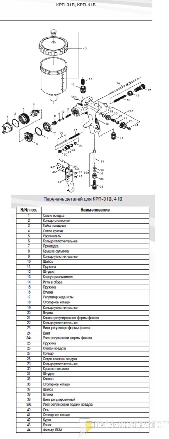 | 2 | поз. 4; КРП- 41В,41Н, сопло краски Ф 1,7мм | 1 |