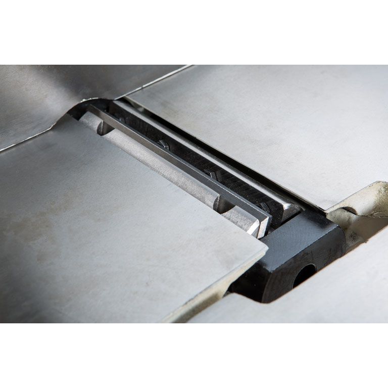 Ножевой вал укомплектован тремя ножами, допускающими повторную заточку. Их типоразмер такой же, как и у профессиональных фуганков Jet с аналогичной шириной строгания.