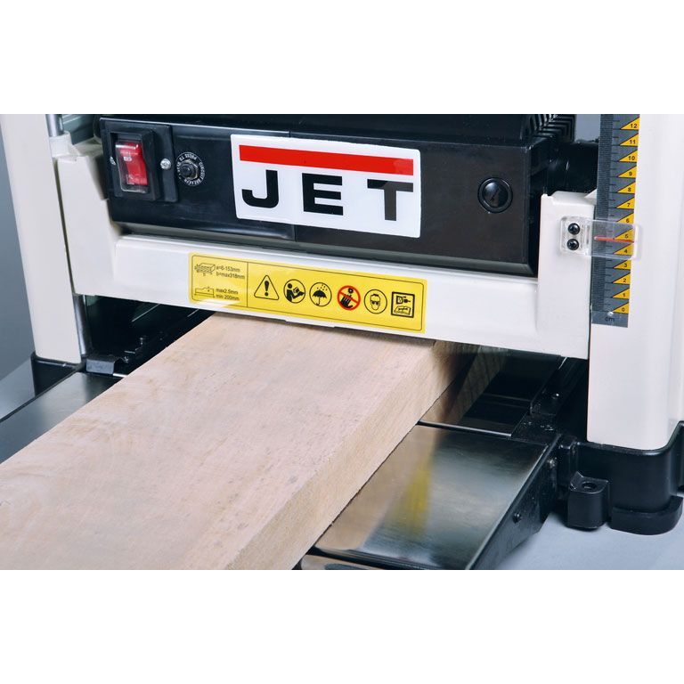 Легкий и компактный рейсмусовый станок Jet JWP-12 предназначен для индивидуального использования в столярных мастерских и «на выезде» в условиях стройки. Благодаря коллекторному мотору он весит всего 30 кг, обладая при этом мощностью 1,8 кВт. Двигатели этого типа требовательны к соблюдению температурного режима, поэтому JWP-12 оснащен датчиком перегрева, отключающим питание, когда нужен перерыв на охлаждение.