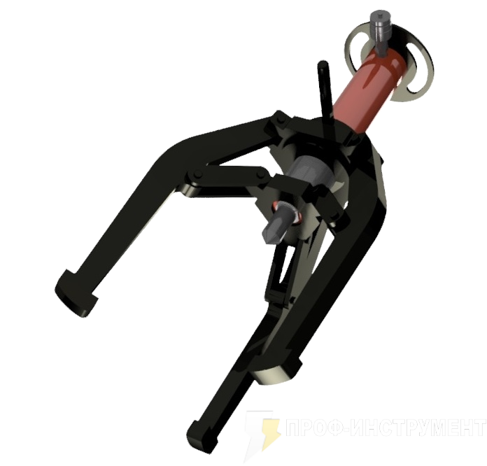 - Ввести захваты в зацепление с демонтируемой деталью таким образом, чтобы имелся жесткий упор захвата с траверсой съемника. При этом необходимо следить, чтобы ось съемника была установлена без перекоса относительно оси снимаемой детали. Подачей гидравлической жидкости подвести наконечник к центру детали. Создав предварительный натяг, зажать деталь. Убедится в правильности установки съемника.