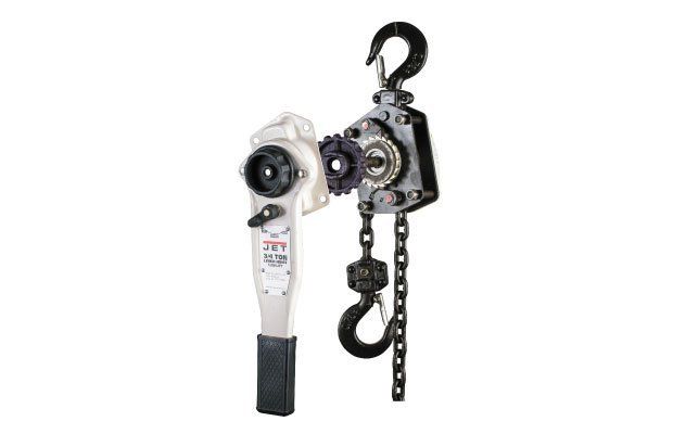 Все управление инструментом осуществляется вручную, при помощи рычага. Закрытый ступор, наличие в конструкции лебедки игольчатых подшипников, обеспечивают плавность хода и возможность фиксации груза на необходимой высоте. Тяговое усилие рычажной тали торговой марки JET составляет всего 35 кг.