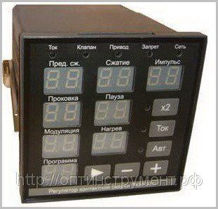 Развитие сварочного оборудования невозможно аппаратуры управления сварочным процессом, так как сварочный процесс достаточно сложен и требует точного контроля. Основными параметрами режимов контактной сварки являются сила тока, длительность его импульса и усилие сжатия электродов. Контроль этих параметров чрезвычайно важен для получения качественного сварного управления сварочной машины называется регулятором. Это название сложилось исторически, так как первые модели приборов позволяли регулировать только время прохождения сварочного тока, причем сила тока определялась только параметрами сварочного трансформатора. Этот способ управления чрезвычайно прост. Он применяется в тех случаях, когда не накладывается особых условий на точность и повторяемость сварочного цикла, например при сварке арматурной сетки.